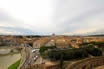 Antique aqueduc romain qui reflète dans une flaque d'eau